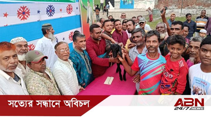 শেরপুর-২ আসনের প্রার্থী মো. আবদুল্লাহ বাদশা মাদরাসা ছাত্রদের মাঝে ফুটবল বিতরণ