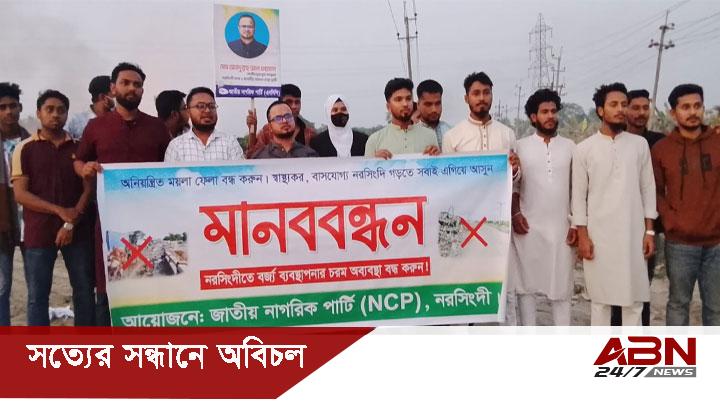 বর্জ্য ব্যবস্থাপনার বিরুদ্ধে এনসিপির মানববন্ধন নরসিংদীতে