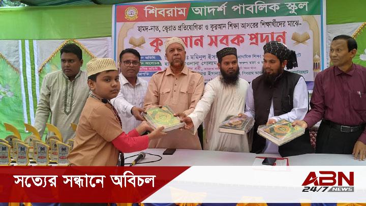 লালমনিরহাটে শিবরাম স্কুলের শিক্ষার্থীদের মাঝে পবিত্র কোরআন বিতরণ