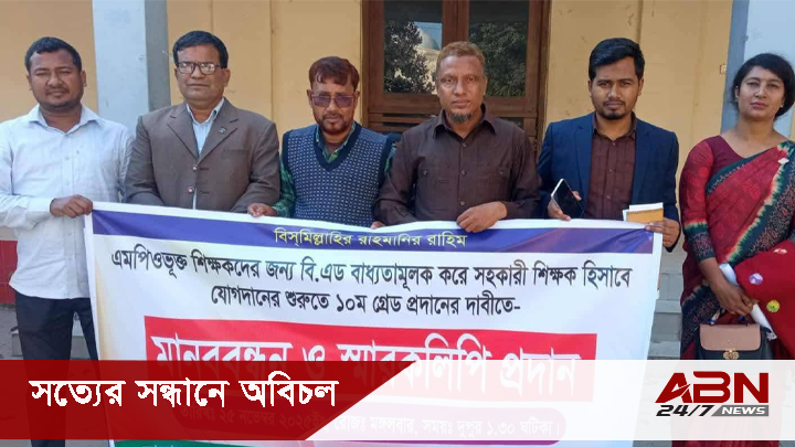 গাইবান্ধার গোবিন্দগঞ্জে এমপিওভুক্ত শিক্ষকদের জন্য বিএড প্রশিক্ষণ বাধ্যতামূলক করা এবং সহকারী শিক্ষক হিসেবে যোগদানের শুরুতেই ১০ম গ্রেড প্রদানসহ বিভিন্ন দাবিতে