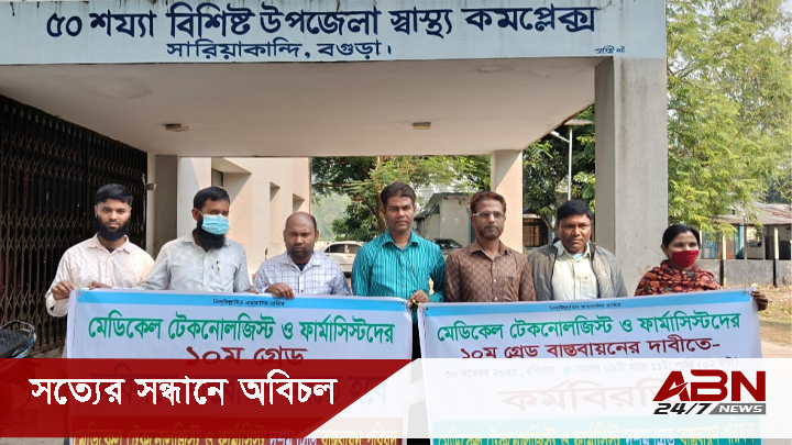 সারিয়াকান্দিতে মেডিকেল টেকনোলজিস্ট ও ফার্মাসিস্টদের ১০ম গ্রেড বাস্তবায়নের দাবিতে কর্মবিরতি