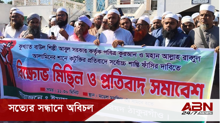 ঠাকুরগাঁওয়ে বাউল শিল্পী আবুল সরকারের বিরুদ্ধে পবিত্র কোরআন ও মহান আল্লাহ তায়ালার শানে কটুক্তির প্রতিবাদে বিক্ষোভ মিছিল ও প্রতিবাদ সমাবেশ