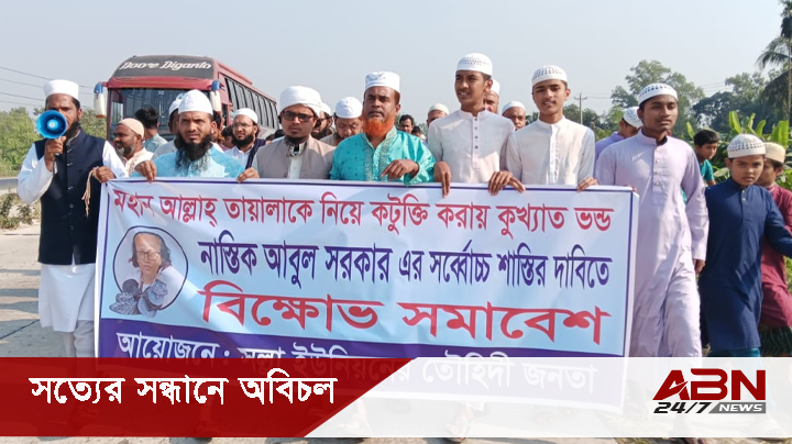 মহান আল্লাহ তাআলাকে নিয়ে কটূক্তির অভিযোগে অভিযুক্ত বাউল আবুল সরকারের শাস্তির দাবিতে টাঙ্গাইলের কালিহাতী উপজেলার এলাকাবাসী বিক্ষোভ মিছিল ও সমাবেশ