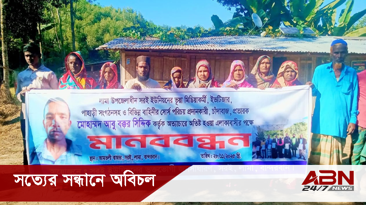 লামার সরই ইউনিয়নের আমতলীতে প্রতারণার অভিযোগে স্থানীয়দের মানববন্ধন