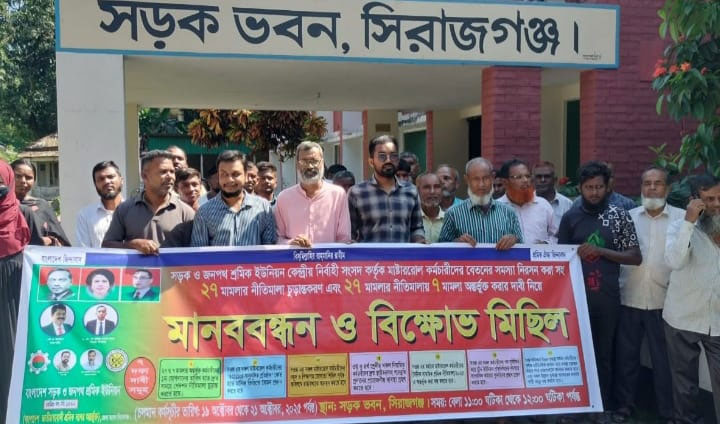 বেতন বৈষম্যের জালে মাস্টাররোল শ্রমিকরা- নীতিমালা বাস্তবায়নের দাবিতে সিরাজগঞ্জে সড়ক ও জনপথ শ্রমিকদের তিনদিনের কর্মসূচি