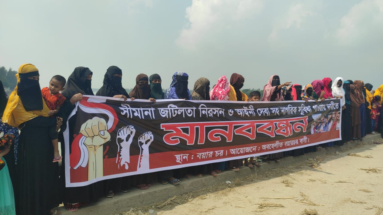 রামগতির বয়ারচরে টেকসই বেড়িবাঁধ নির্মাণের দাবিতে এলাকাবাসীর মানববন্ধন: