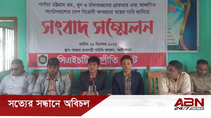 পার্বত্য চট্টগ্রামে গুম, খুন ও চাঁদাবাজির সঙ্গে জড়িতদের দ্রুত গ্রেপ্তার এবং দেশবিরোধী অপপ্রচার বন্ধের দাবিতে বান্দরবানের আলীকদমে সংবাদ সম্মেলন করেছে