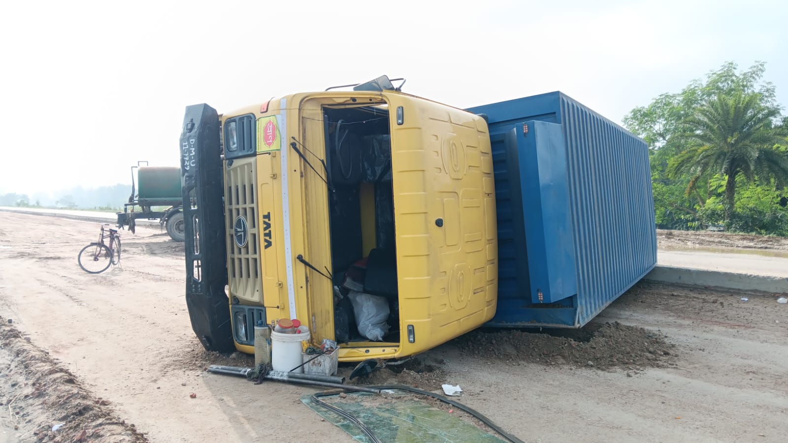 যমুনা সেতু মহাসড়কের সল্লা ছোট বটতলায় নিয়ন্ত্রণ হারিয়ে উল্টে যায় একটি কাভার্ড ভ্যান