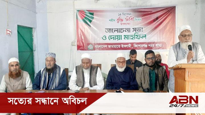 মহান মুক্তিযুদ্ধের সময় দেশের বুদ্ধিজীবীদের হত্যাকে স্মরণ করে কিশোরগঞ্জে শহীদ বুদ্ধিজীবী দিবস পালিত হয়েছে। রোববার সকালে জেলা জামায়াতে ইসলামীর কার্যালয়ে