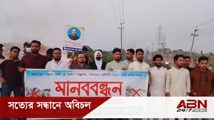 নরসিংদীতেবর্জ্য ব্যবস্থাপনার বি/রুদ্ধে এনসিপির মানববন্ধন