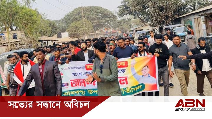 মাধবপুরে তারেক রহমানের দেশে ফেরাকে ঘিরে উপজেলা তাঁতি দলের আনন্দ মিছিল