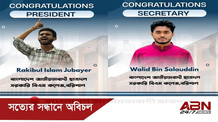 বরিশাল সরকারি বিএম কলেজে বাংলাদেশ জাতীয়তাবাদী ছাত্রদল এর নতুন নেতৃত্ব নির্বাচনের ফলাফল ঘোষণা করা হয়েছে। কেন্দ্রীয় সভাপতি – “রাকিবুল ইসলাম
