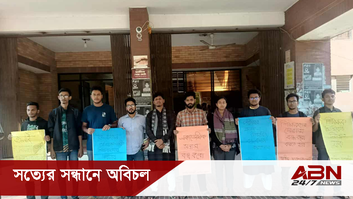 জাবিতে জুলাই হামলার মদদদাতা শিক্ষকদের বিচার দাবিতে ছাত্রশক্তির মানববন্ধন