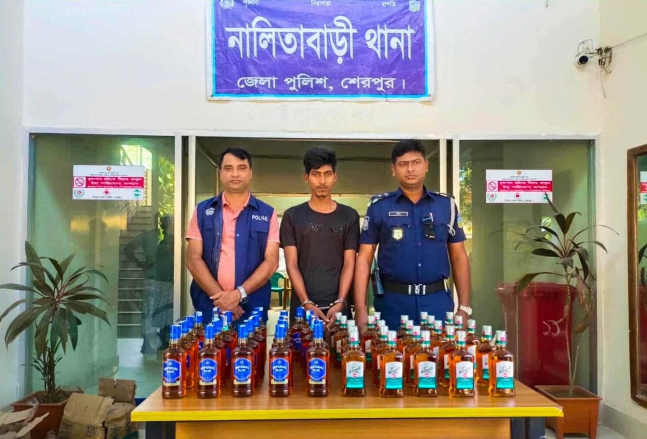 নালিতাবাড়ীতে ৪৮ বোতল ভারতীয় মদসহ যুবক গ্রেফতার