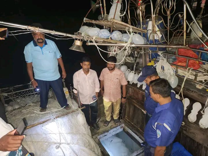 বেআইনিভাবে ইলিশ ধরার প্রস্তুতিকালে ২ ট্রলার ও ২ বরফবোঝাই ট্রাক আটক